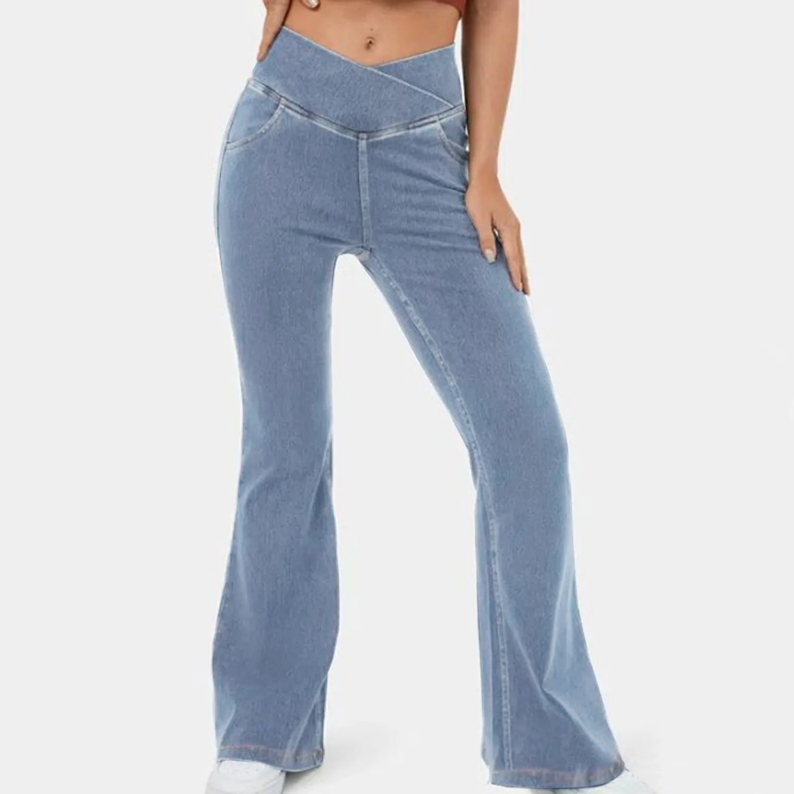 Élégant et Confortable : Découvrez nos jeans évasés qui offrent un style sans effort. La taille haute élastique et les jambes évasées créent un look flatteur et moderne.
