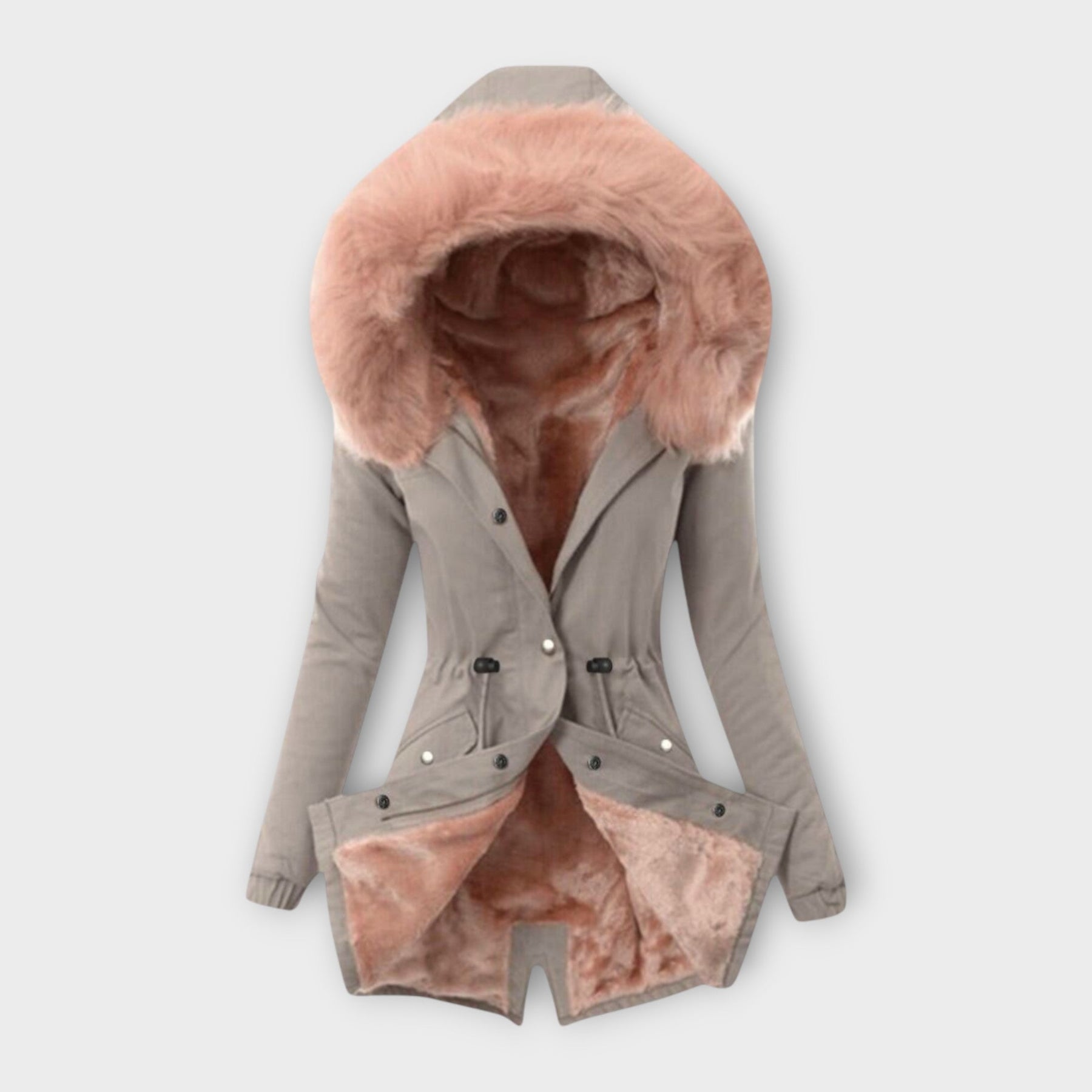 La capuche généreuse est ornée de douce fourrure synthétique, qui protège non seulement du vent et des intempéries mais ajoute également une touche d'élégance.